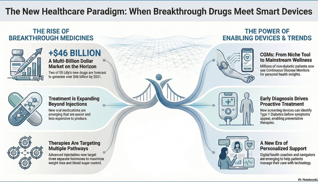The combination of medicine and devices, exemplified by Continuous Glucose Monitors (CGMs), represents a fundamental shift from episodic clinical care to continuous, technology-enabled lifestyle-oriented care. While originally a medical necessity for insulin management, CGMs have become a mainstream tool for proactive health management among millions of people without diabetes.